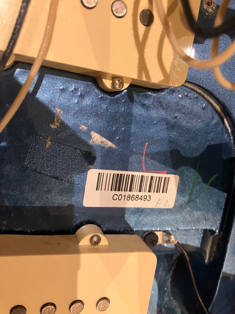 WE HAVE EMAILED FENDER AND ALTHOUGH THIS SHOWS ON THEIR SYSTEM, THE HANG TAG INFO AND SERIAL NUMBER CHECKER THAT THIS IS 'SKYBURST METALLIC' THEY ALSO COULDN'T RULE OUT THAT IT WAS A FACTORY ERROR OR SPECIAL ORDER.