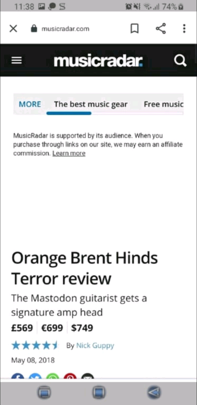 *MINT* Orange BRENT HINDS Terror valve amp head DUAL CH tube amplifier Laney BOSS PositiveGrid