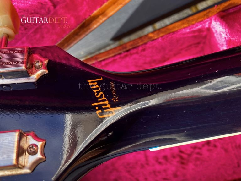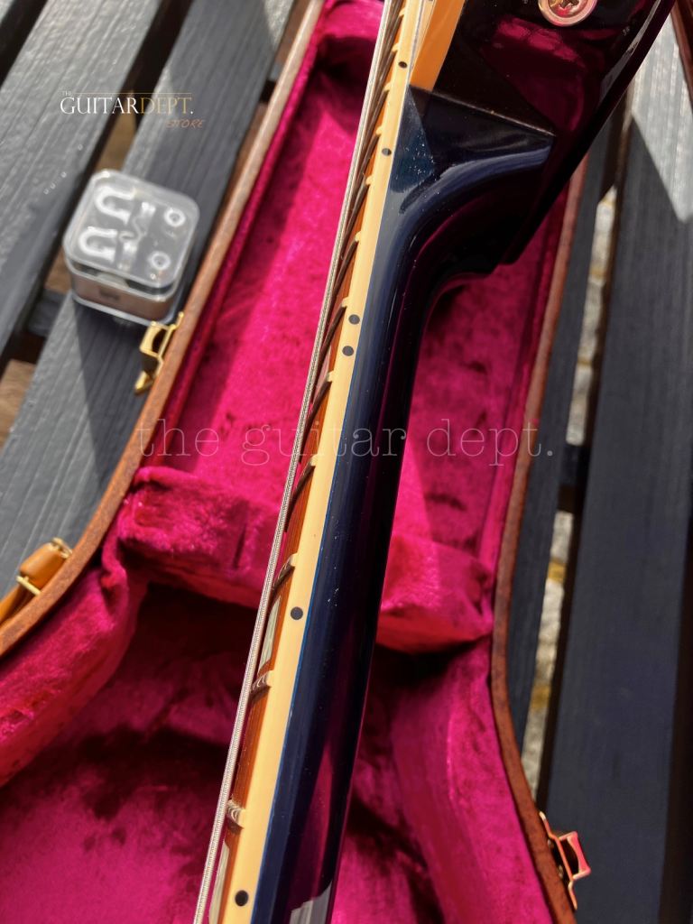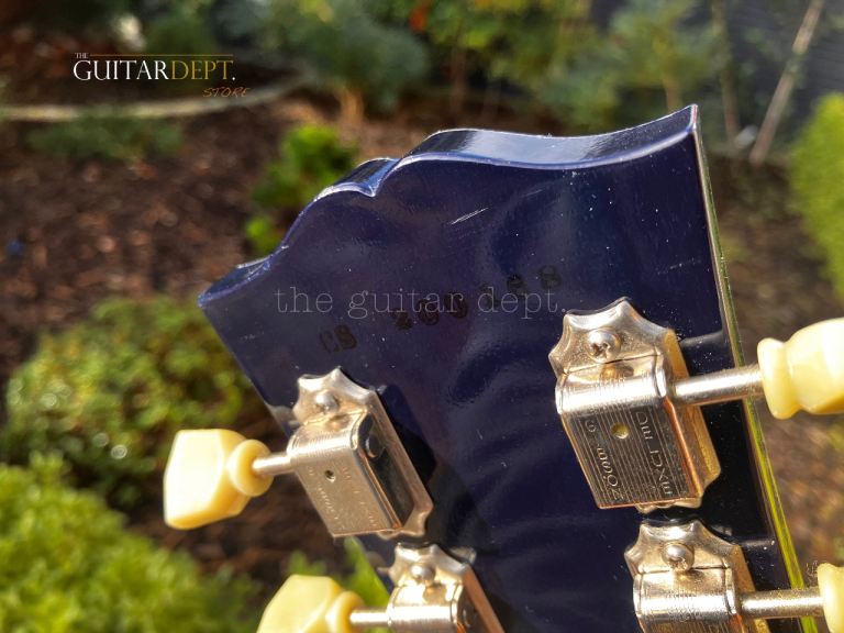 A FEW SMALL SURFACE MARKS ON THE REAR OF THE BODY IN THE DARK BLUE STAINED FINISH ...A SLIGHT LACQUER REACTION MARK FROM A GUITAR STAND BUT NOT THAT NOTICABLE AS THE STAIN IS VERY DARK...