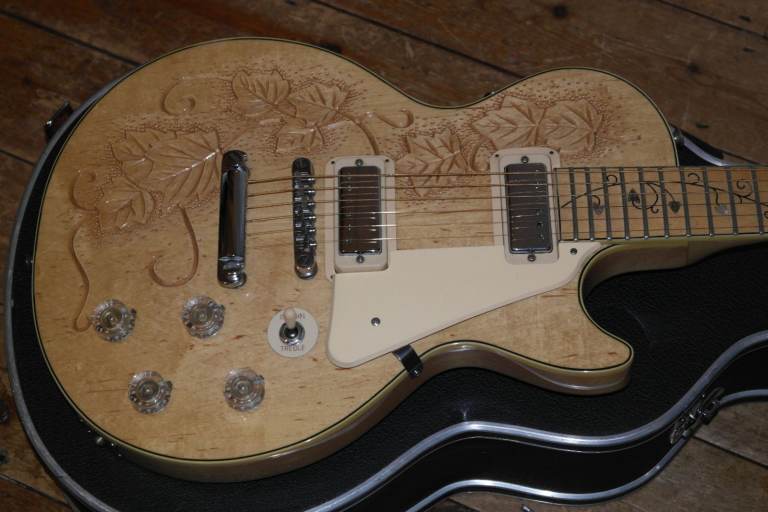 1976 Kasuga LG 2000 Les Paul Deluxe made in Japan carved leaf front, tree of life fingerboard