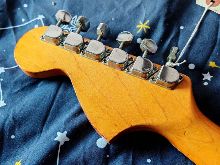Condition : in overall good original vintage condition. Typical age related wear to the finish with various nicks n scrapes on the body and finish wear to the neck but no breaks or repairs and plenty of life left in the original frets. An Extra hole was added at some point to the pickguard and a String tree and back plate has been removed.