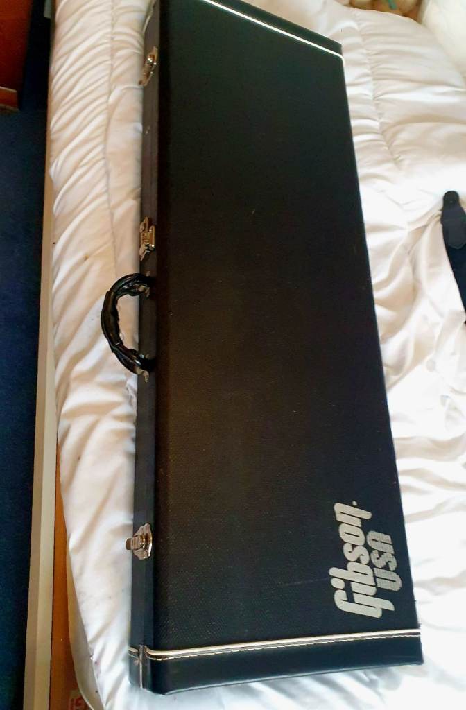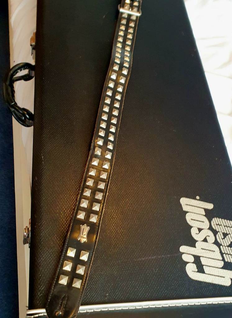 It also comes with the original USA Gibson fitted case and the Levis black leather pyramid stud strap