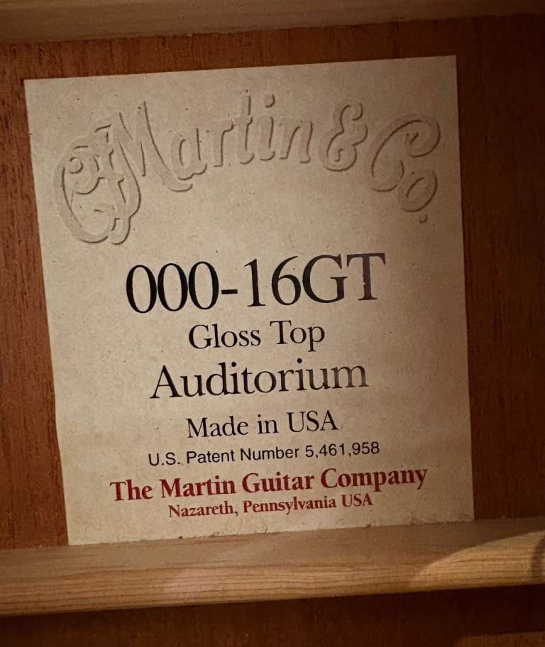 The Martin 000-16GT was introduced in 2000 as part of the 16 Series, which aimed to provide high-quality instruments at a more accessible price point compared to some of Martin's premium models. Although the model was retired (discontinued) by Martin in 2018, it remains popular among guitarist for its excellent sound quality and craftsmanship. The guitar's construction from all-solid wood (no laminates) ensures durability and enhances its tonal characteristics over time.