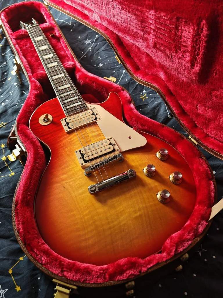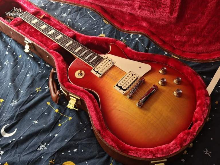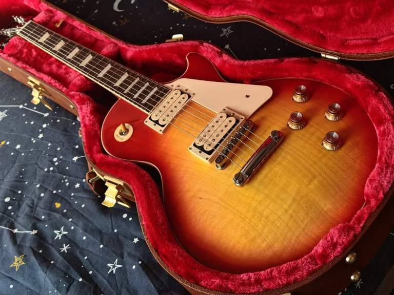 It features a solid Mahogany body and neck adorned with a stunning AA figured Maple top, Rosewood fingerboard, Grover Rotomatic tuners and a ‘60s styled SlimTaper neck, the Les Paul Standard ‘60s offers a comfortable yet fast playing experience and tone that leaves you wanting more. Under the hood, a duo of powerful uncovered double white PAF-inspired Alnico V Burstbucker 61 humbuckers provide articulate and rich, classic electric guitar tones that suit a wide range of playing styles and genres.