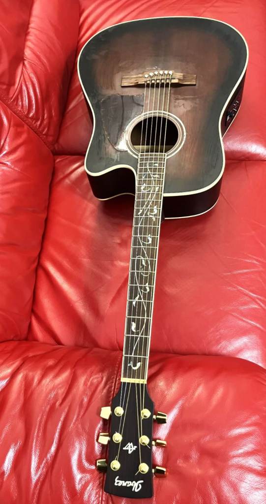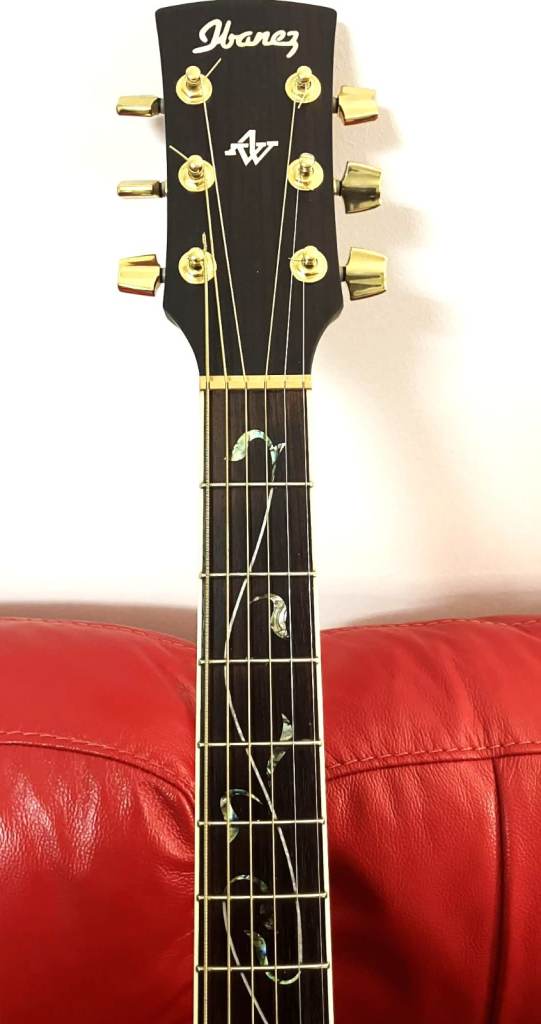 The Ibanez AW 40 Electro Acoustic Guitar is a vintage model from 2004 featuring a multicoloured dreadnought body with a solid Sitka spruce top. This professional-level instrument is designed for right-handed players with a maple neck and rosewood fretboard. With its 21 frets and 6-string configuration, this guitar creates beautiful sound and is a rare and collectable piece for musicians. Made in Japan, this Ibanez AW 40 guitar is a valuable addition to any acoustic guitar collection. Superb original gig bag included.
