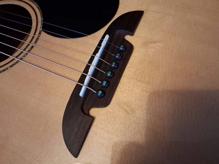 INDIAN LAUREL BI-EVEL BRIDGE FOR INCREASED STRING BREAK ANGLE