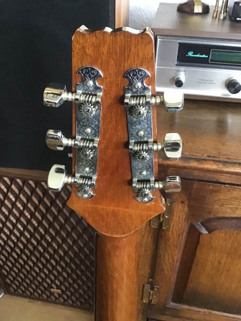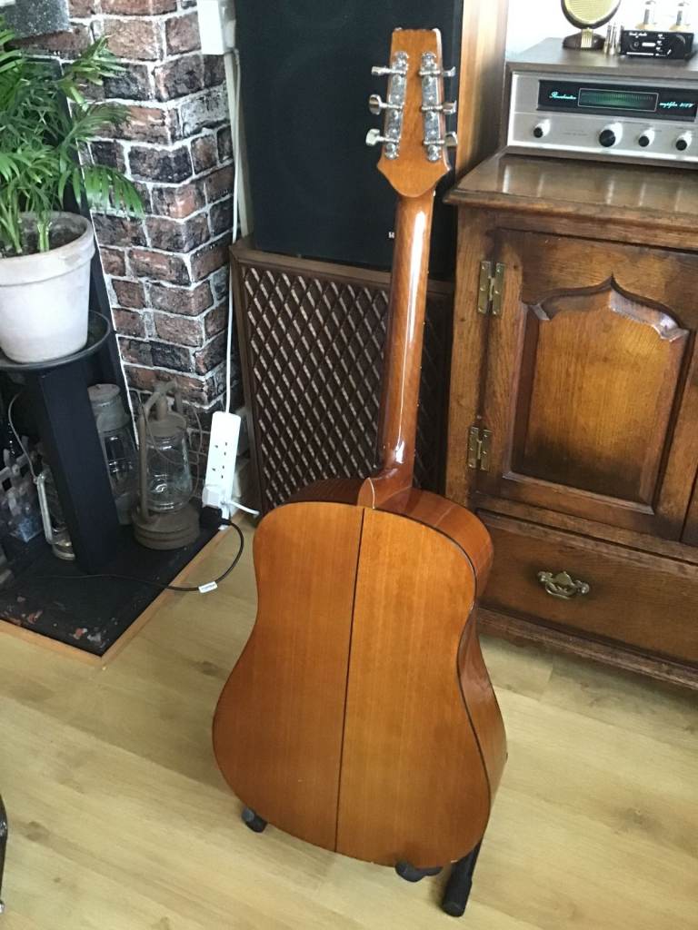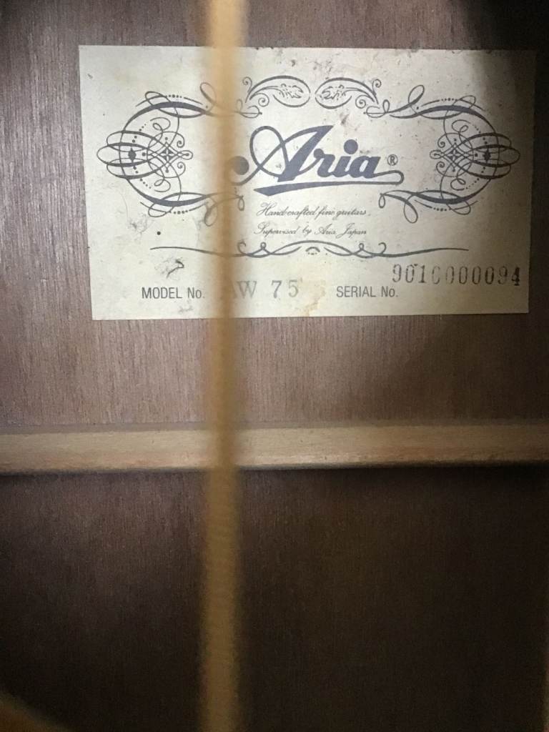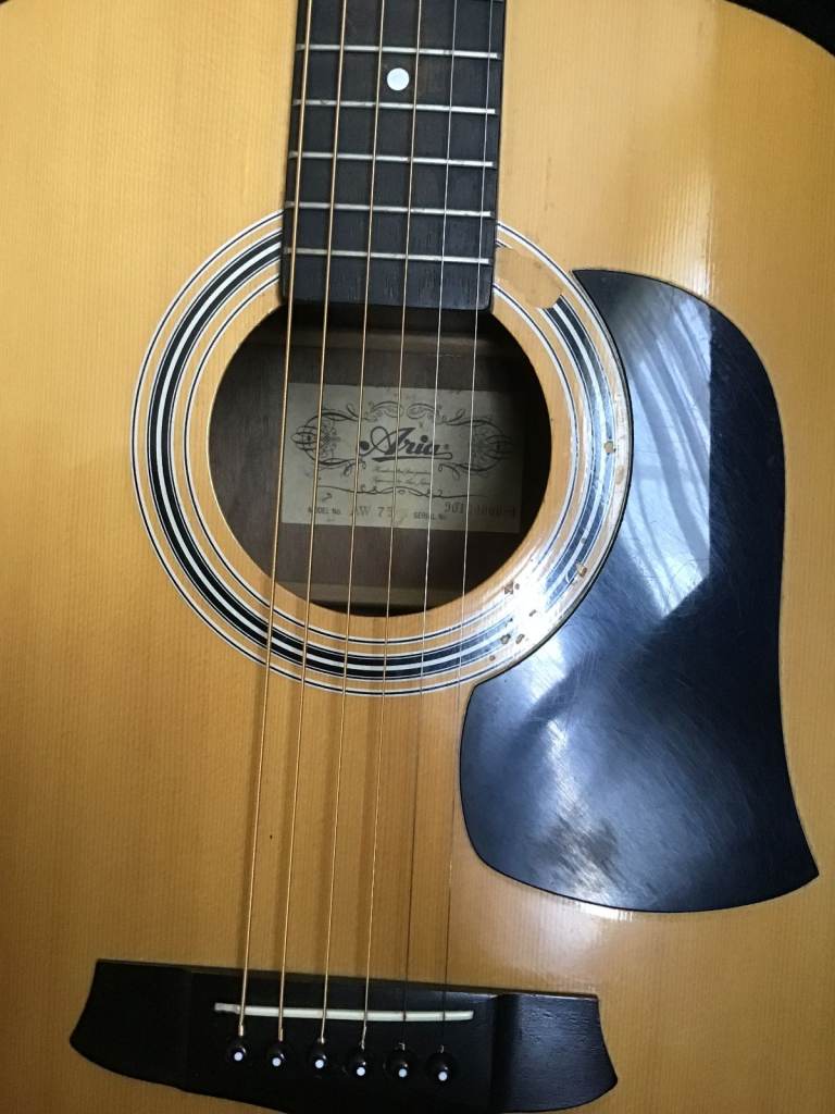 Aria acoustic guitar for sale in good condition with new strings. I think it's from the late 1970s. It has some minor scratches, but hey, it's over 40 years old, so we couldn't ask for more.