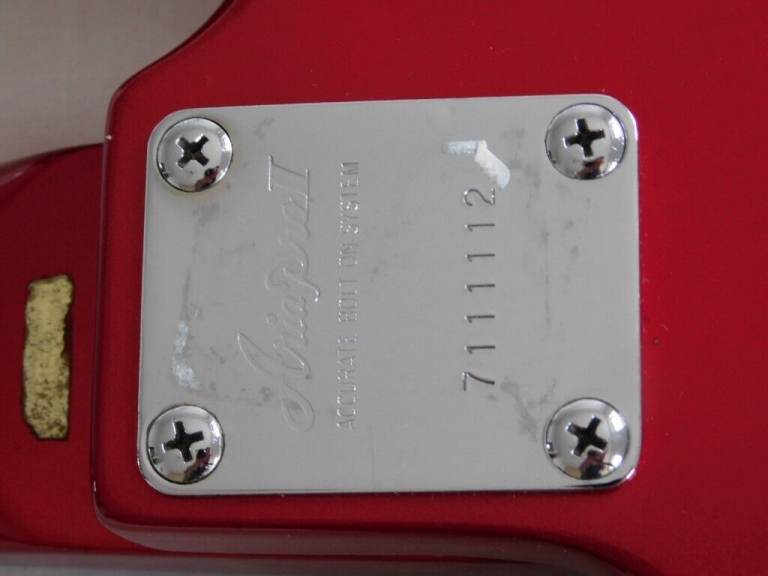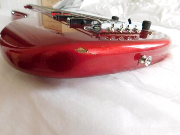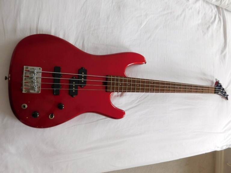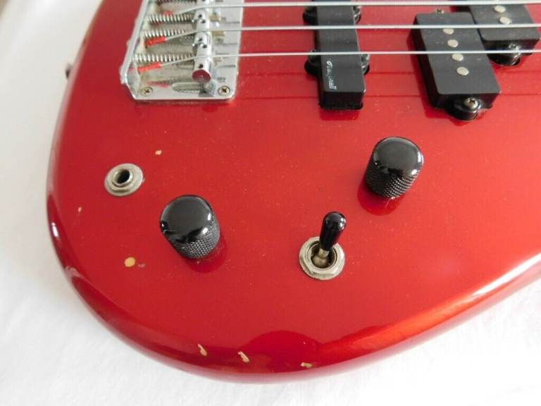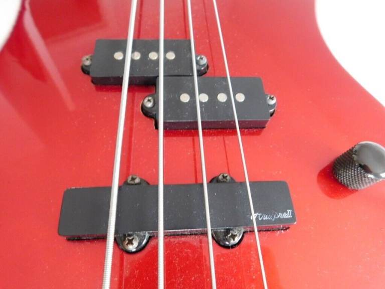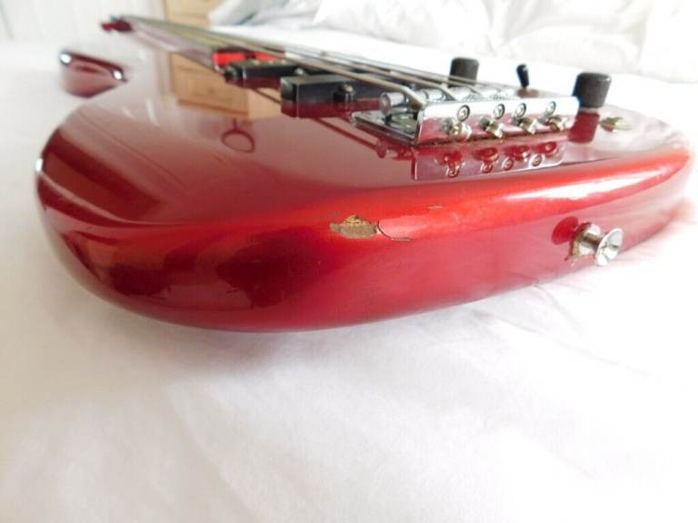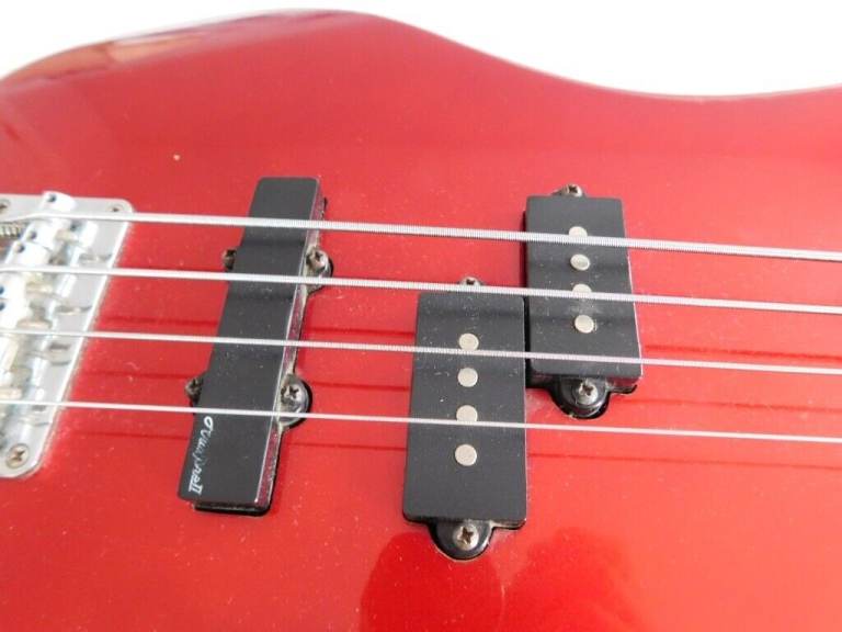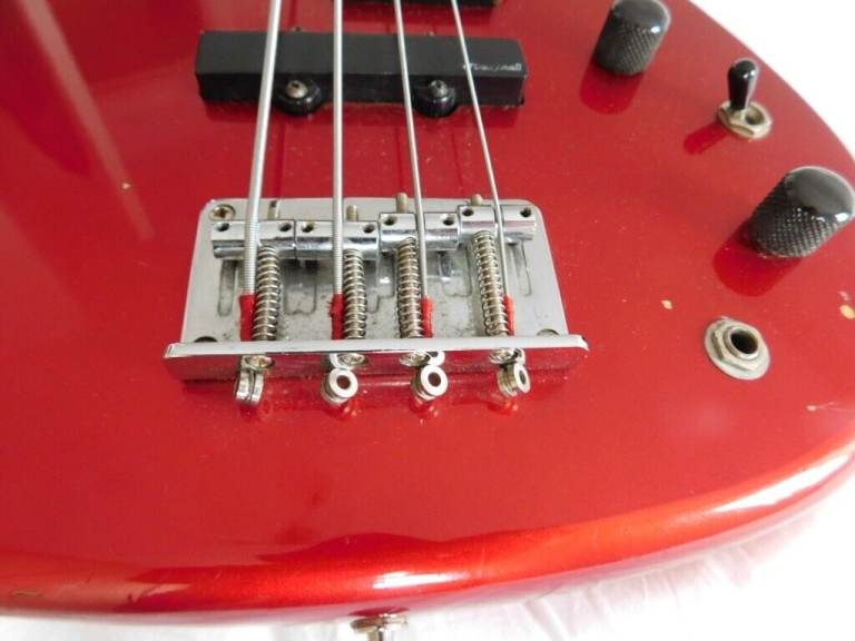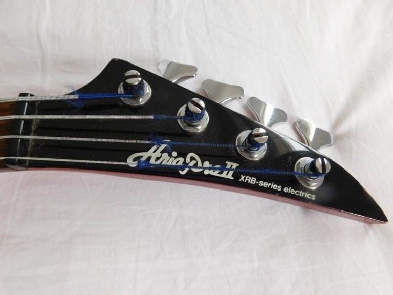 Collector has for sale a vintage Aria pro II XRB-2 electric bass guitar. 34 inch scale with a pair of pickups, volume, tone and selector. Bolt-on neck. Candy Apple Red finish with Rosewood fretboard.