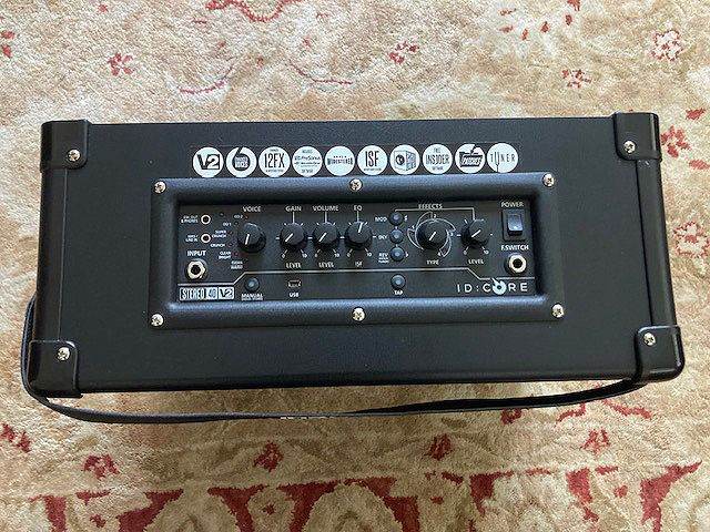 Blackstar 40w (2 x 20w) stereo modelling amp in excellent condition – rarely used. Compact (44cm wide x 34cm high x 9cm deep) and relatively light weight, with two 6.5 inch speakers. Control panel: guitar input; MP3/line input; emulated/headphones output, USB input. Rotary voice selector offering six voicings from Clean Warm to Overdrive 2. Gain, volume and EQ controls – tone control features ISF (Infinite Shape Feature), allowing player to move between ‘American’ and ‘British’ tones. Range of modulation, delay and reverb effects with tap, intensity and level controls. Power switch, footswitch input (switch not included) and built-in tuner. External power supply and carry strap included. No manual but PDF version is readily available online.