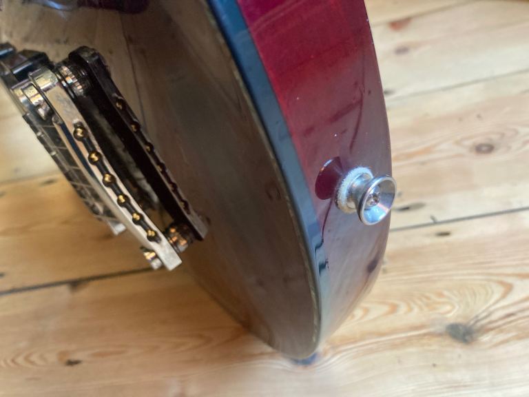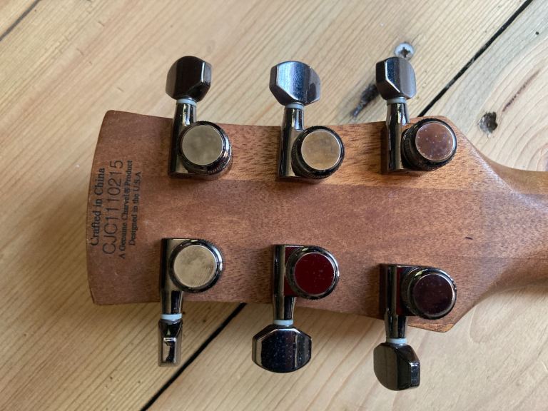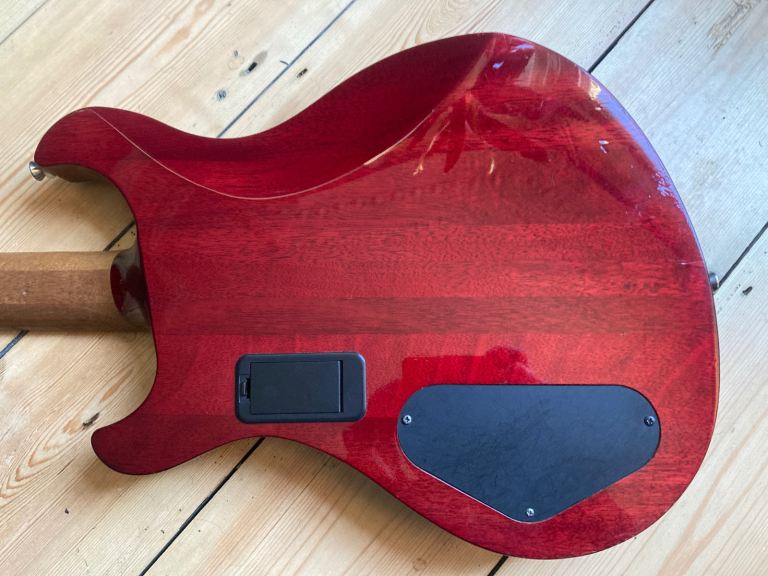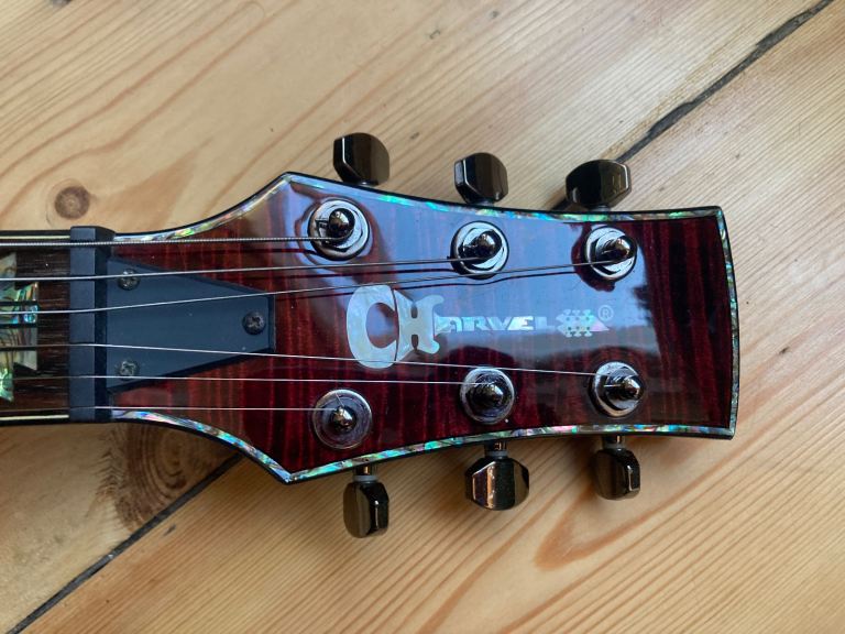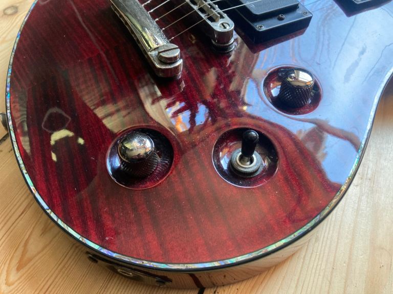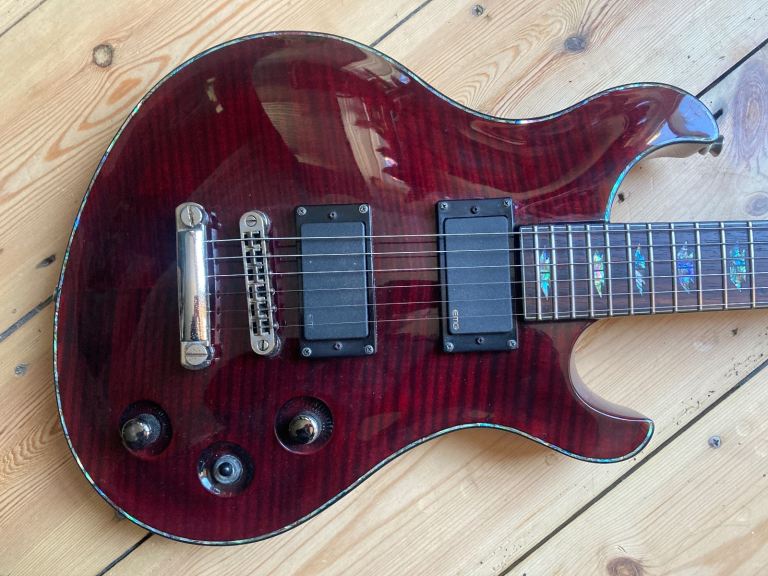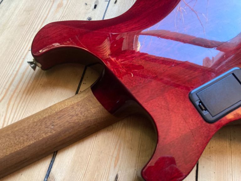 The DC-1 was the highest spec model in the series, ( there was also a parallel option with a floyd rose), with a through neck body with carved top and smartly finished neck heel joint.