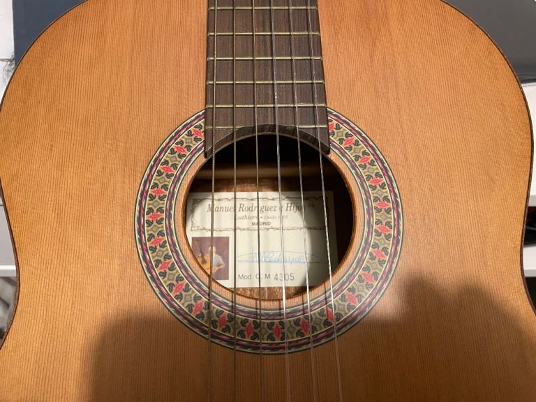 Classical Spanish guitar by Manuel Rodriguez of Madrid with certified model number.