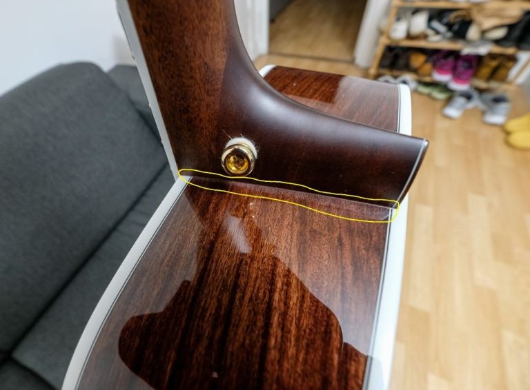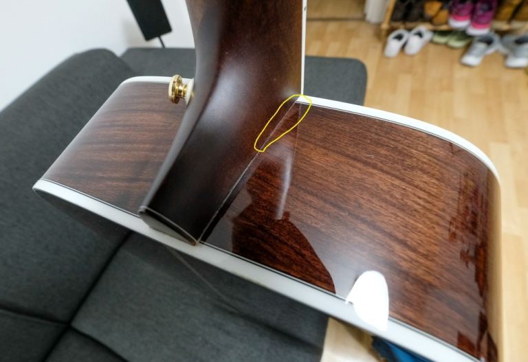 - Issues? Excess glue marks or probably under buffing near the joint area between the neck and the guitar body; as seen with my last 2 pictures. Apart from that, no scratches, dents, other issues, or any history of repair.