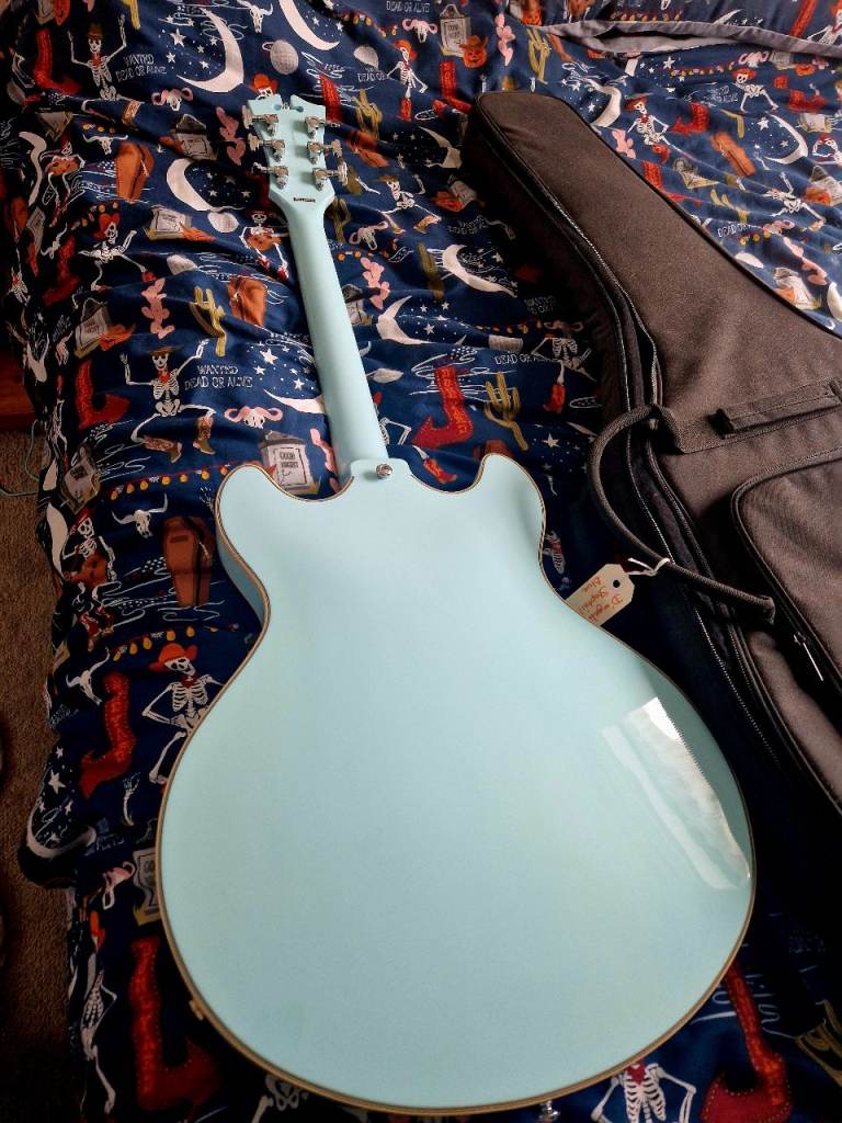 My Beautiful D'Angelico Stop tail Premiere 2022. The most Gorgeous Baby blue, so vintage looking. Comes in original padded D'Angelico Gigbag.