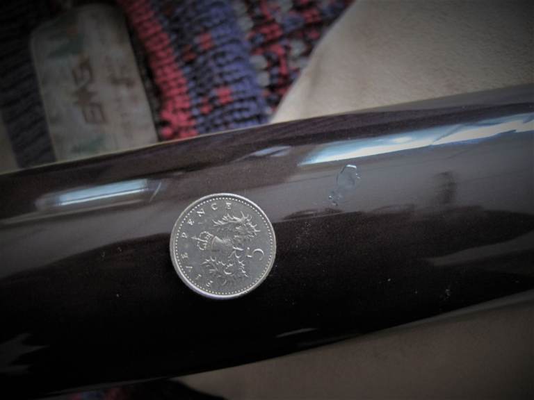 Issues There is a touched up paint chip on the back of the neck.