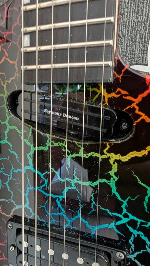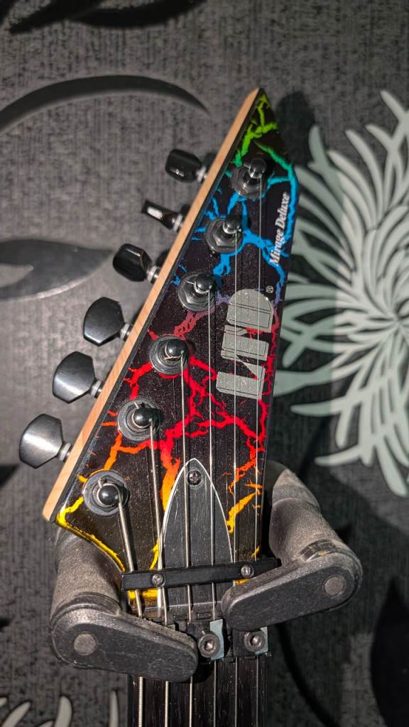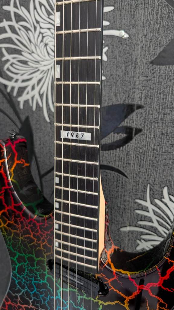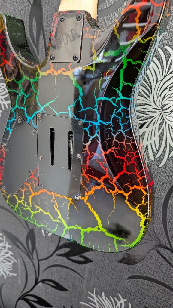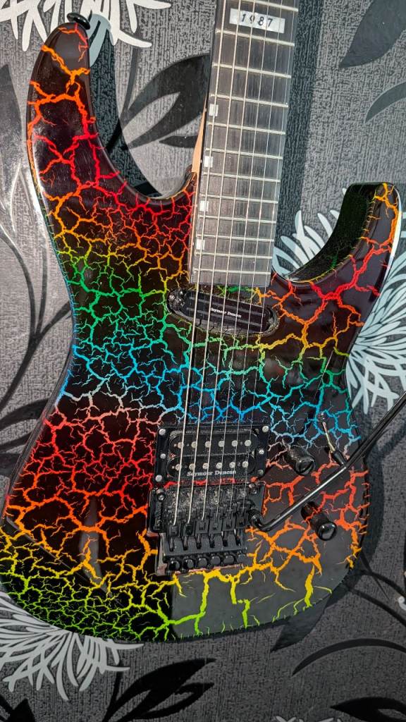 For sale is another super rare guitar. My stunning ESP LTD Mirage Deluxe 1987 Special Run in the ultra‑rare Rainbow Crackle finish.