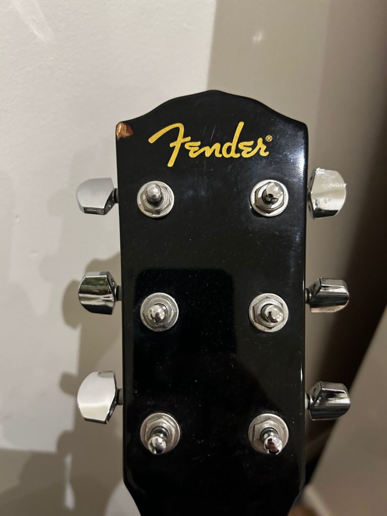 Fender CD-60. Small ding on the headstock (pictured), needs a set of strings. Plays great. Pick up in Battlefield.