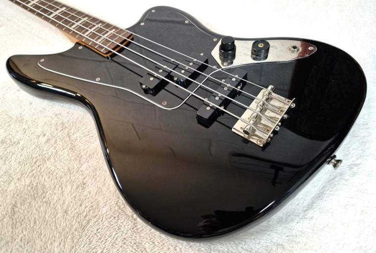 2018 Fender Squier Classic Vibe 70s Jaguar Bass finished in classic ebony, in need of a little tlc.