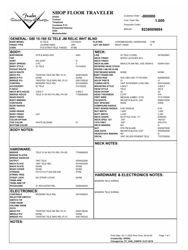 Comes complete with original case, COA and case candy. The floor traveller was sent to me recently from Fender and captures all of the specs.