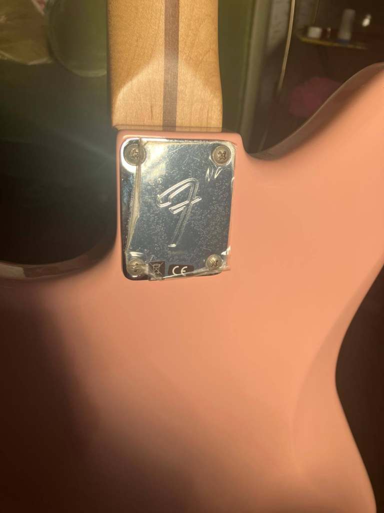 The most obvious change from the standard Player Series Jazzmaster is of course the colour! Shell Pink is one of Fender’s famous ‘DuPont’ colours from the early halcyon surf days, when Fender chose their guitar colours to coincide with flashy Cadillacs and Chevies! It’s a beautiful colour and very vintage-correct, especially with the cream pickguard and pickup covers.