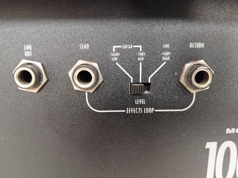 100 watts through a Fender 12 inch speaker, effects loop which is variable in level. In excellent condition and fine working order.