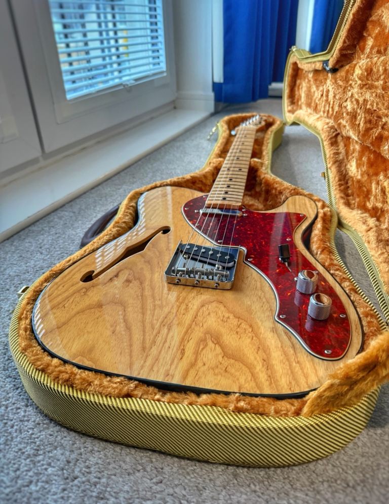 Fender FSR Traditional II Thinline Telecaster 2021 (made in Japan). Quite rare! Very good condition bar two little bits on headstock in photos. Comfy U shape neck. Stunning natural top, very very lightweight and comes with a tweed style hardcase…Asking for £990. Will consider partial trade for badcat cub or dr z maz 18