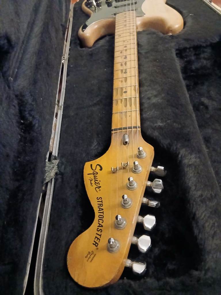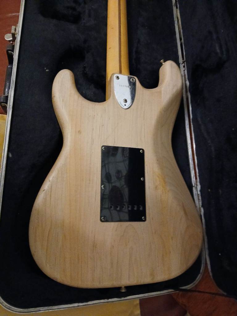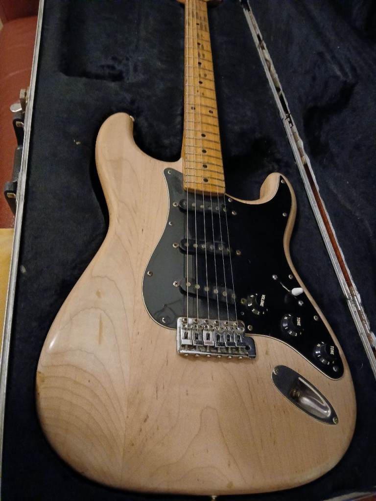 I've removed the original black paint from the body in the past and refinished it in a clear nitrocellulose coat, the neck is a beautifully comfortable C shape with a 7.25in radius fretboard which has been naturally relic'd by being played over the years so looks/is completely authentic compared to any 4K Fender Custom Shop factory-relic'd Strat IMHO, vintage-style frets which have been dressed during a set-up by a local guitar tech, all electrics working 100%, no trem arm with the guitar and you might want to replace the white switch tip with a black one if you prefer. Comes with an 80s Fender Hardcase which has had a couple of cracks at one edge repaired with bumper filler, not too pretty but the case is solid and all the catches work just fine. Only selling due to a need to downsize my guitar collection so no trades thanks.