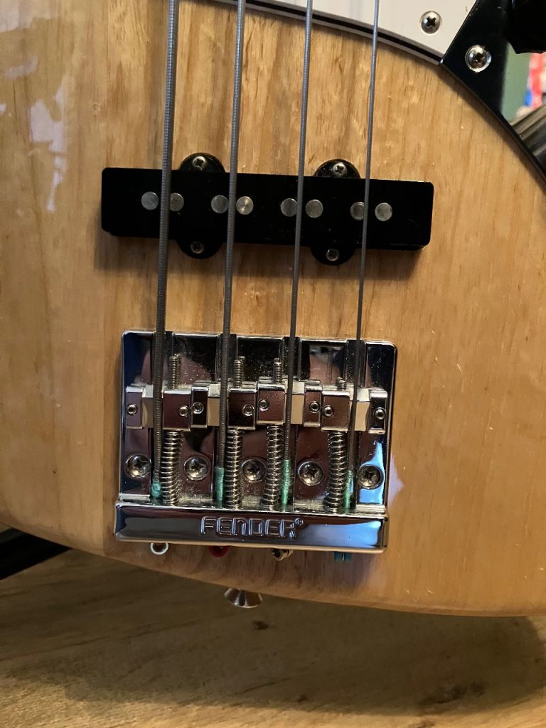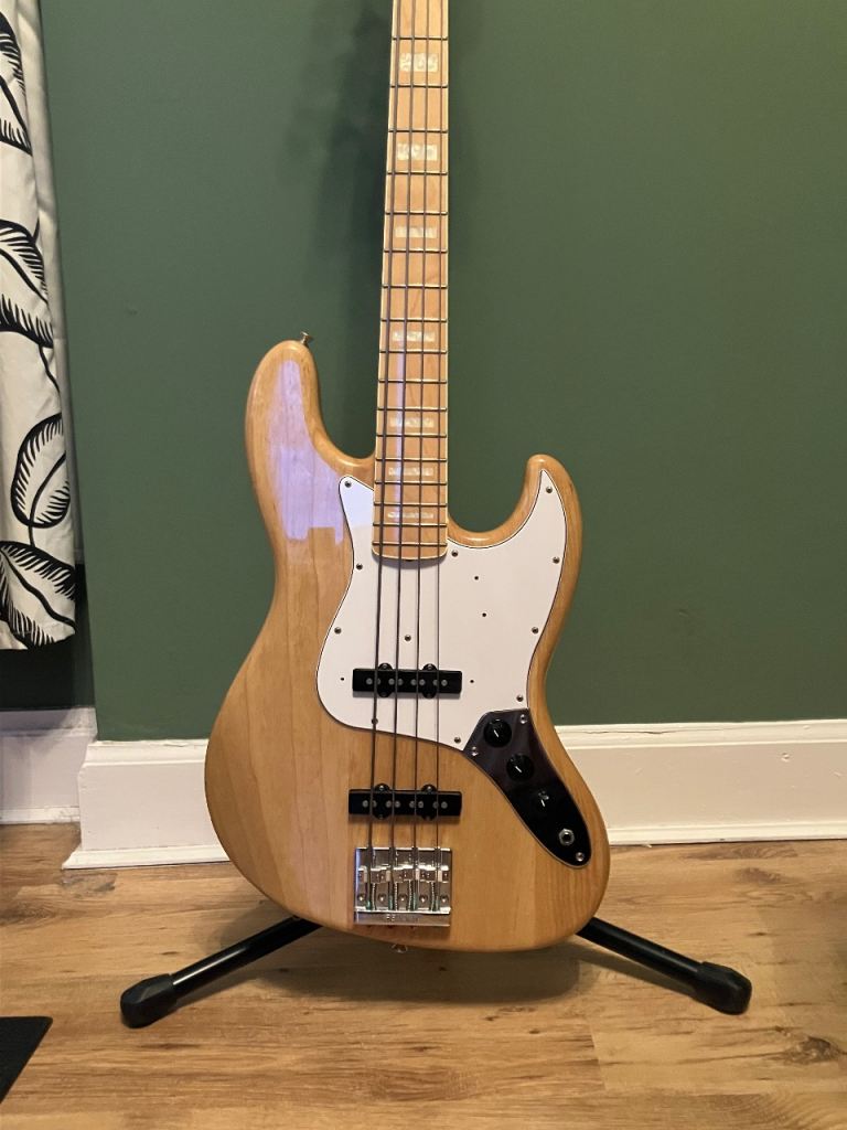 These are superb basses! This being a fantastic '70's reissue Jazz Bass with the build quality from you expect from Japan! This one finished in Natural with an awesome wood grain. This would make a great gigging bass and attention detail is second to none as you would expect from a Japanese made bass. It is in great condition, slight ding in the headstock as pictured. Upgraded Fender Hi Mass bridge. Neck in excellent condition with the gorgeous block inlays and neck binding, The bullet truss rod completes the look.