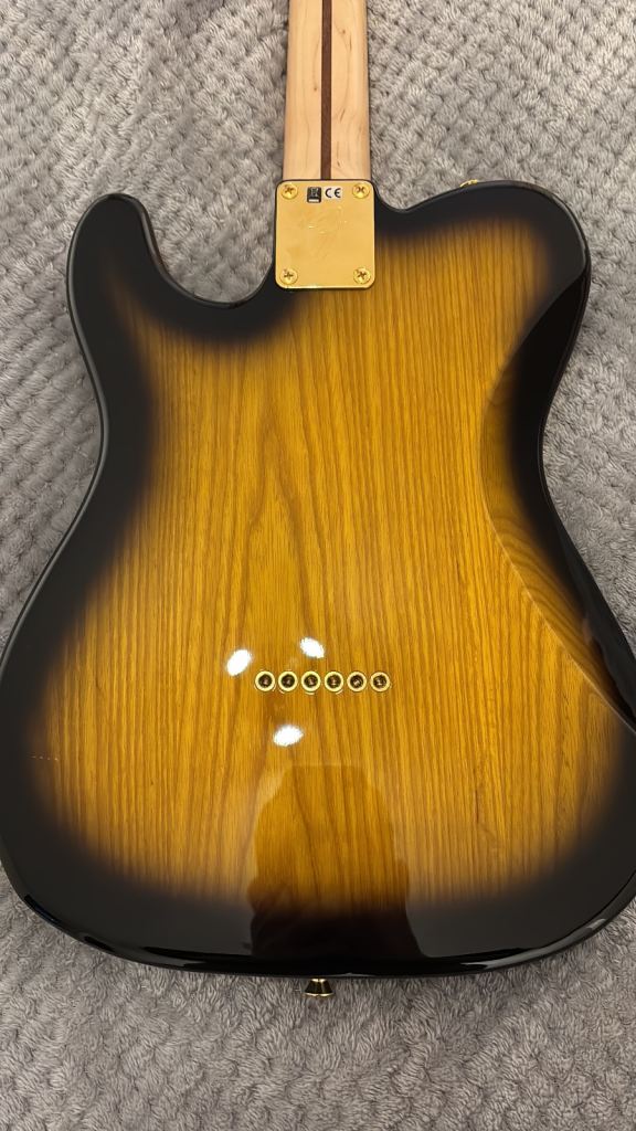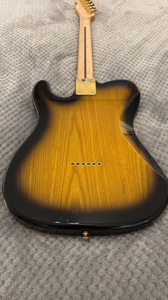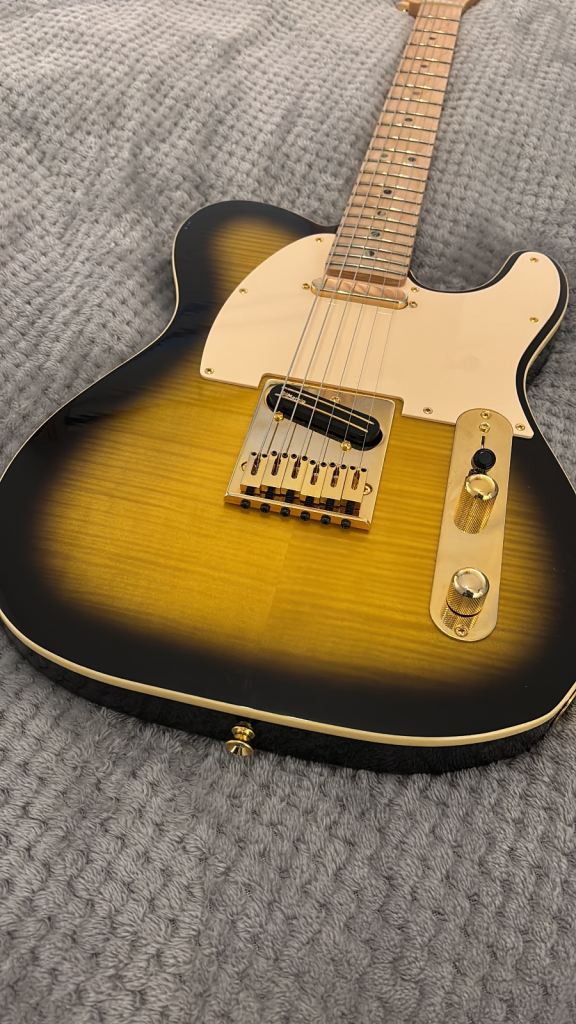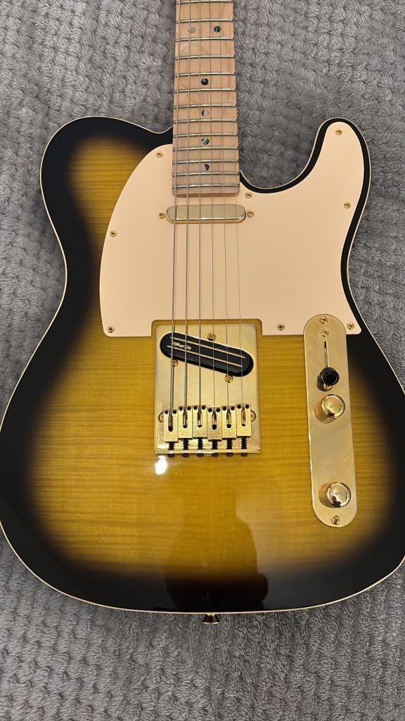 “high-performance signature Telecaster that combines classic Fender Tele tonewoods and ergonomics with modern upgrades for versatility and playability. It features a resonant ash body with a flame maple top and a comfortable contoured design, a satin maple neck with a large “C” profile and modern 12″ radius fingerboard that supports fast, fluid playing, and a powerful pickup set — DiMarzio Twang King in the neck and DiMarzio Chopper T at the bridge — that delivers both rich, dynamic single-coil tones and fuller, high-output sounds suited to rock, blues, and fusion styles. A series/parallel rotary switch adds extra tonal flexibility beyond the standard three-way selector, making this guitar adaptable for a wide range of musical styles”