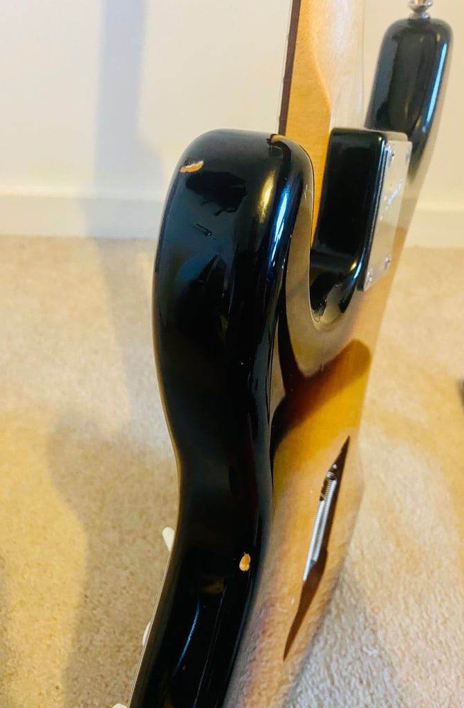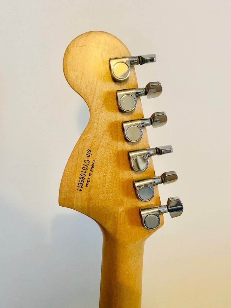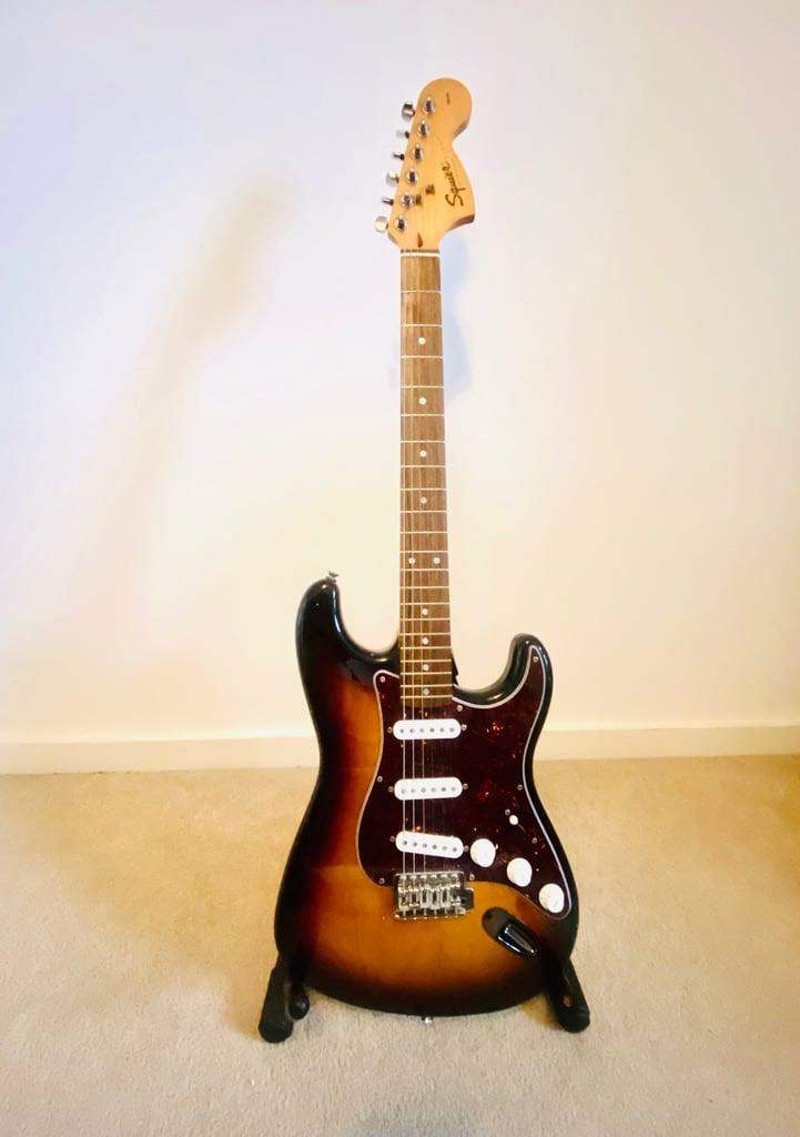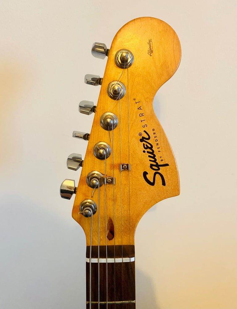 Lovely warm sunburst Fender Squier Affinity which has been customised and includes classic large 70s headstock.