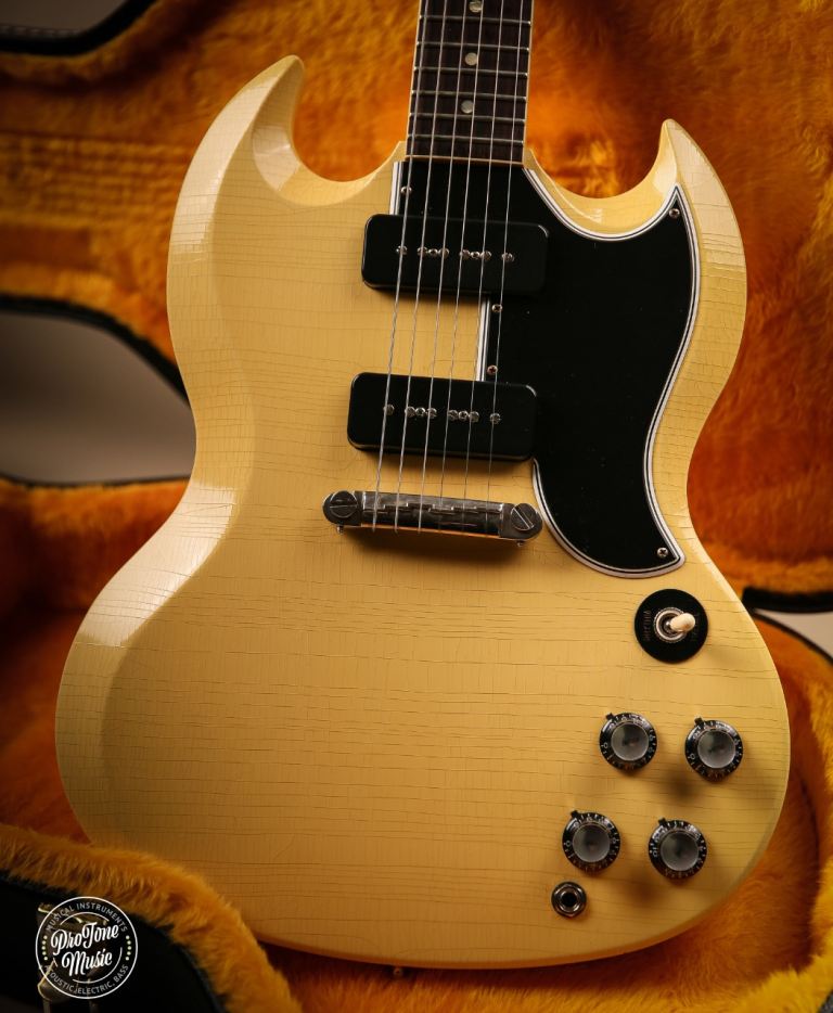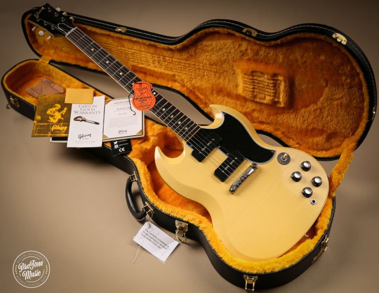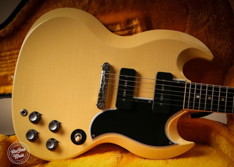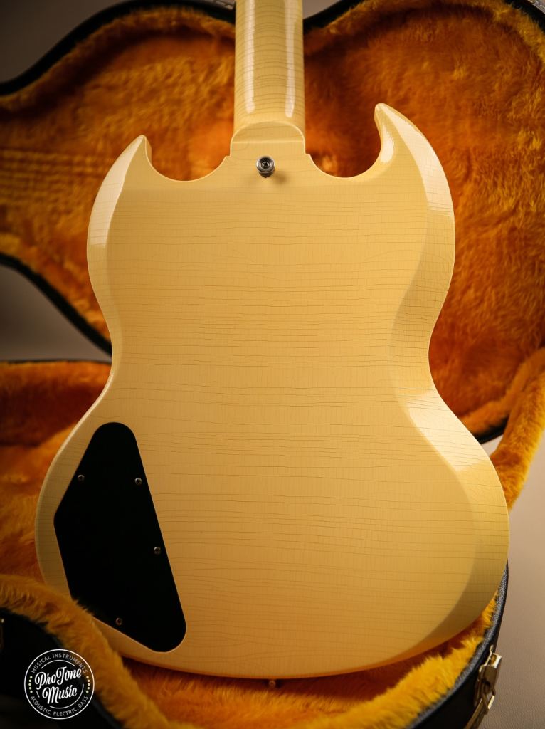Welcome to Protone Music and here we have for sale is a 2021 Gibson Custom Shop 63 Reissue SG Special Murphy Lab Ultra Light Aged in Classic White as you can see it is a stunning example and due to the ageing process from Gibson this guitar has gone more of a TV yellow colour which looks fantastic, this truly is a superb guitar as we are a massive fan of the Murphy lab series as they just feel and play awesome.