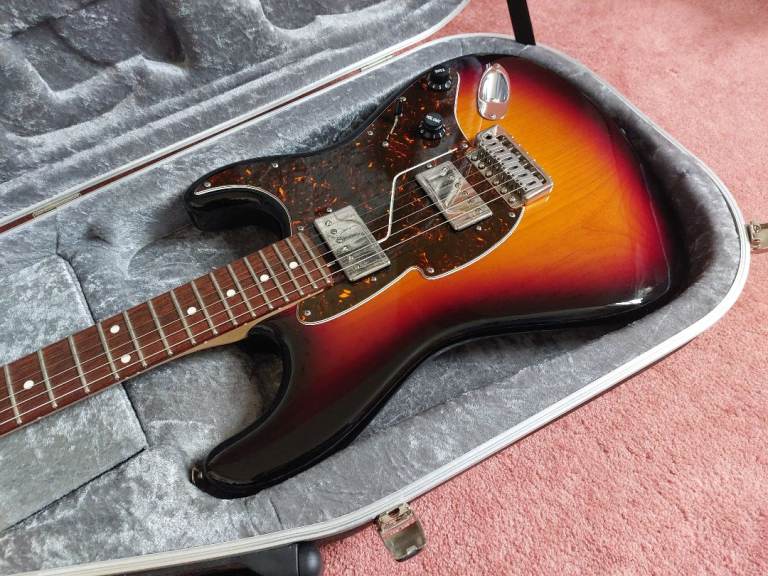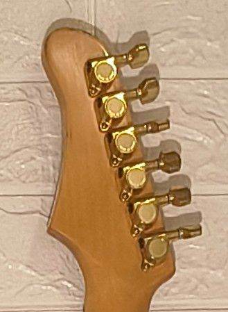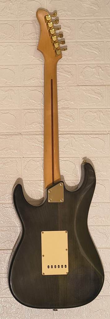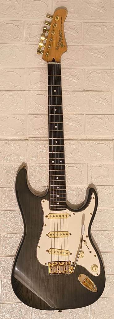 This is a rare Guitar, part of the Grand Prix Series 'Destination Of Rock Addict' Line, built in the Fujigen Guitar Factory in Japan and this model only featured in the 1994 Greco Guitar Catalogue. It features a Transparent Finish and Gold Hardware along with an Angled Neck Heel Joint which allows easy access to higher Frets. It plays really nicely (and sounds it too). It plays, and sounds, as good as any Fender I've ever played. The Neck Profile is really comfortable too