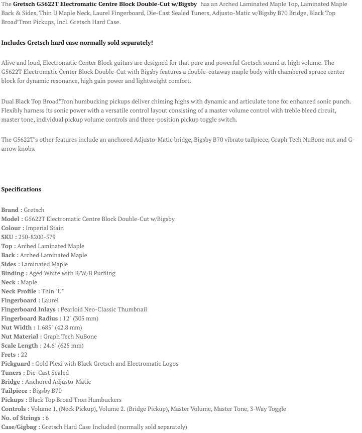 • Model : G5622T Electromatic Centre Block Double-Cut w/Bigsby