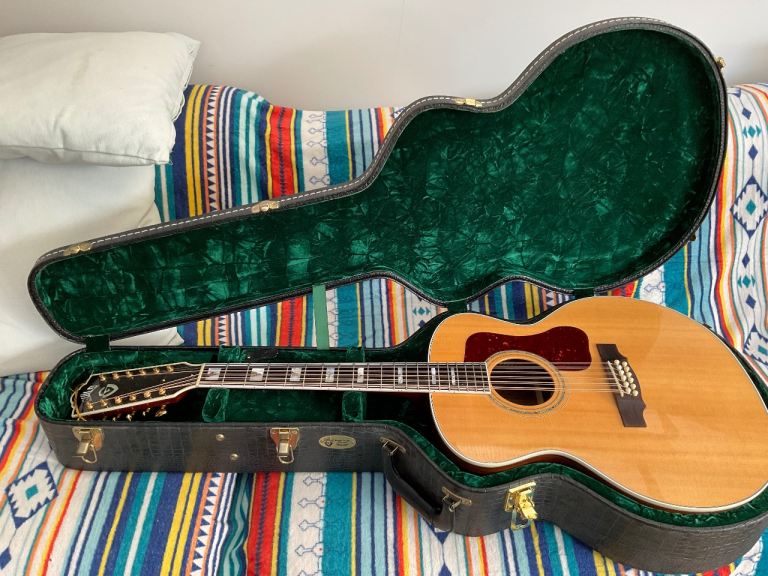 Here we have a Top Of The Line Guild twelve string instrument in immaculate condition made in the New Hartford Connecticut Plant in 2013. It comes with the D Tar internal pick up system with the Master Volume and the Mike. Don’t think you can find a better 12 string anywhere! Also included is the beautiful custom Guild Case.Sensible Offers.can post if buyer arranges collection. or local Pick Up.Cash or Bank Transfer.