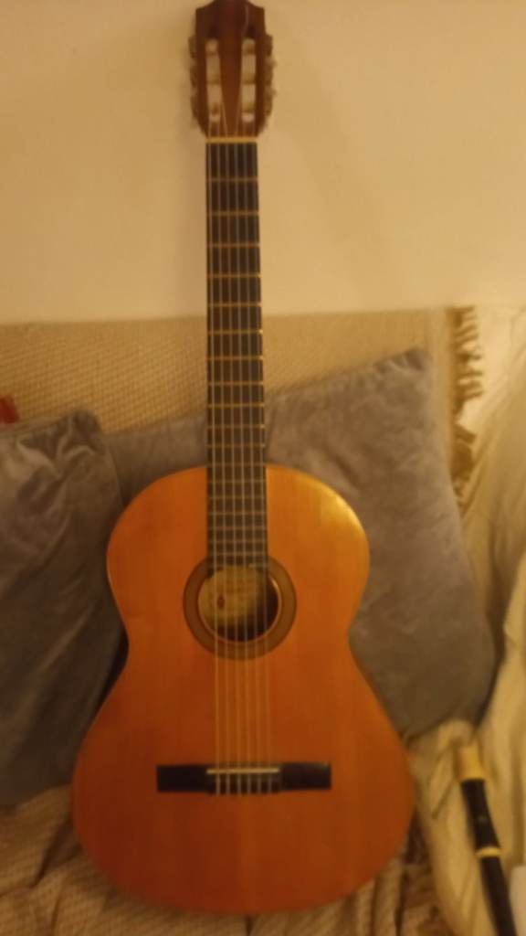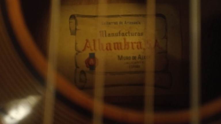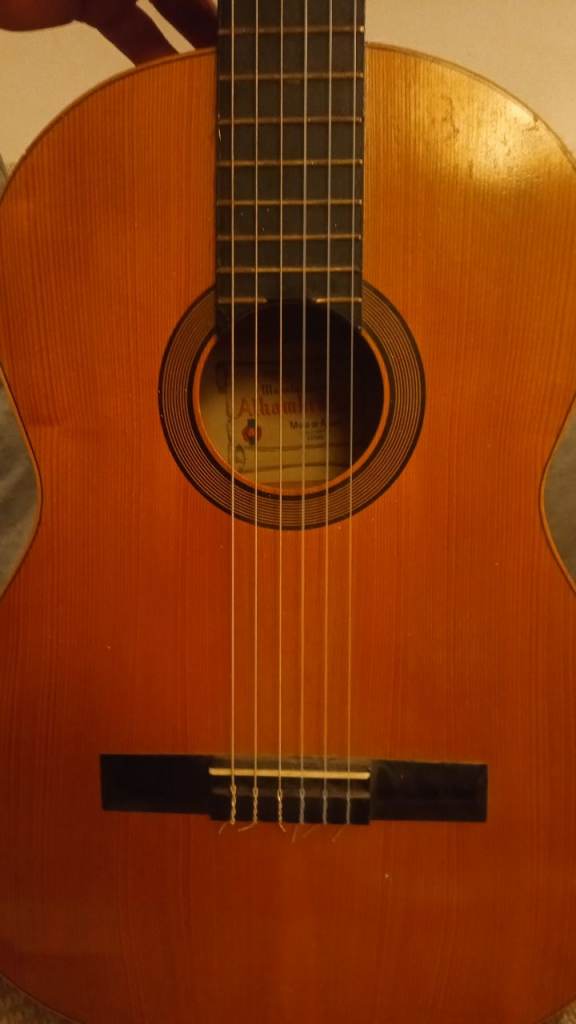 Alhambra Spanish classical guitar. A pleasure to play, and nice sound.