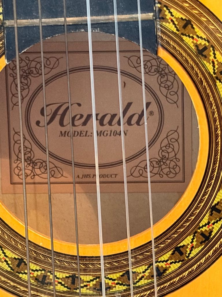 Music bundle for budding musicians. Herald acoustic guitar model MG 104N, Hercules guitar stand, keyboard stand and music holder.