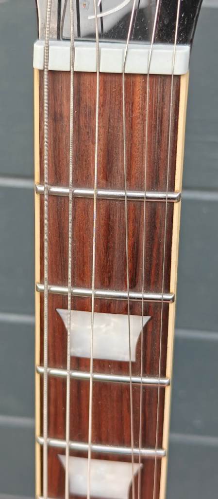 This guitar is in excellent condition, only a few light signs of usage but no chips or cracks, it spent most of the time in its case. Due to stainless steel frets bendings are very smooth, no visible fret usage.