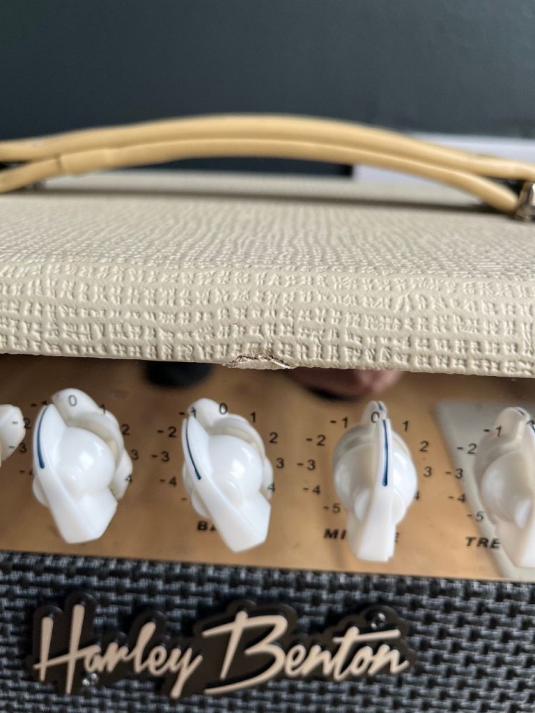 The amp works perfectly but has cosmetic wear from use. The control panel has some scratches where the original Tube15 logo was removed. This does not affect the function of the amp at all.