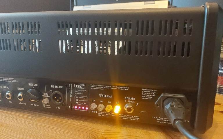 Onboard attenuator reduces power to 18w, 5w, 1w ... and silent (for home recording). Also has speaker-compensated XLR output for routing direct to PA, or recording desk.