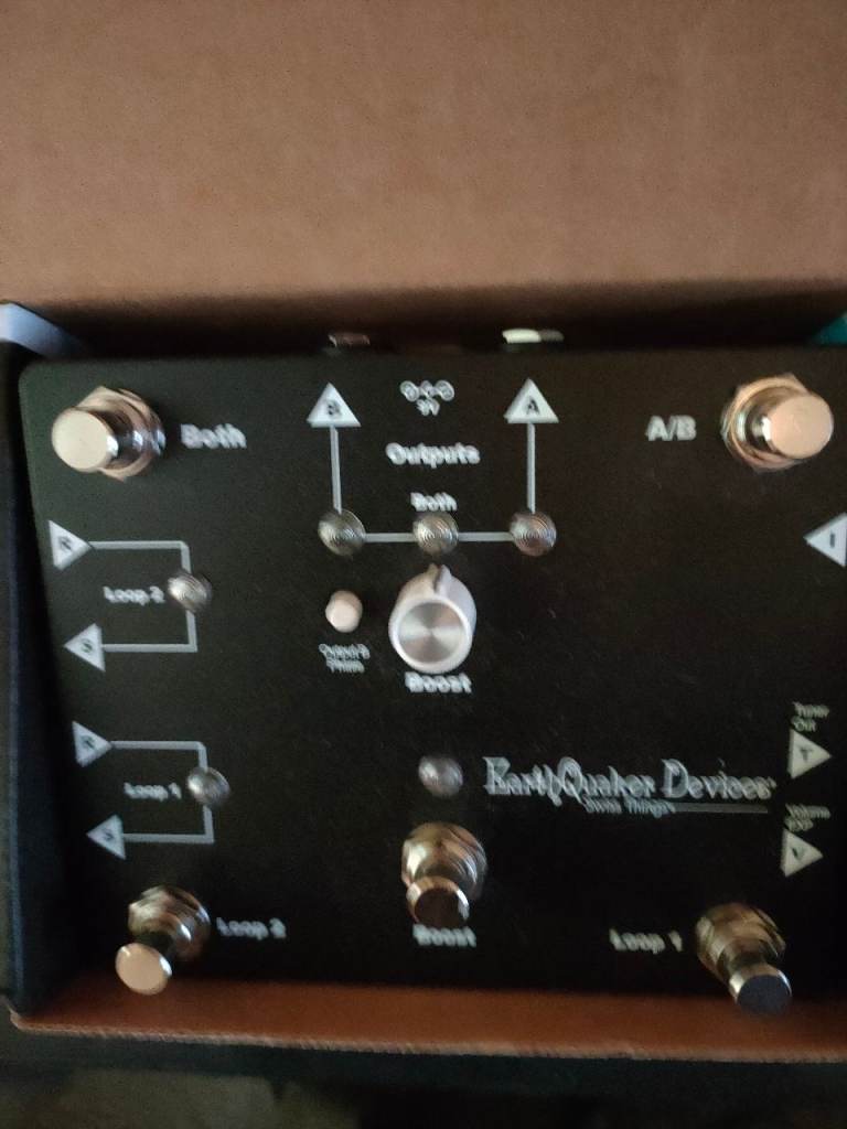 No footswitch ... that belongs with the 2nd one that I bought recently (with working blue light!). Hughes and Kettner FSM MK3 is still available to buy ... but ANY MIDI-enabled device can control this amp.