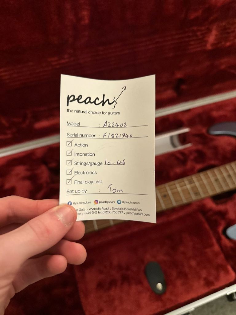 Comes with the original hard case with is in excellent condition, with the original purchase certificate from Peach Guitars.
