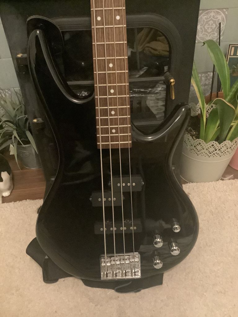 Amazing black active electric bass guitar Ibanez - comes with a Vox AP2-BS for quiet practice - excellent quality musical instrument with great sound - strap and batteries included - pick up only / can deliver if local : £125.