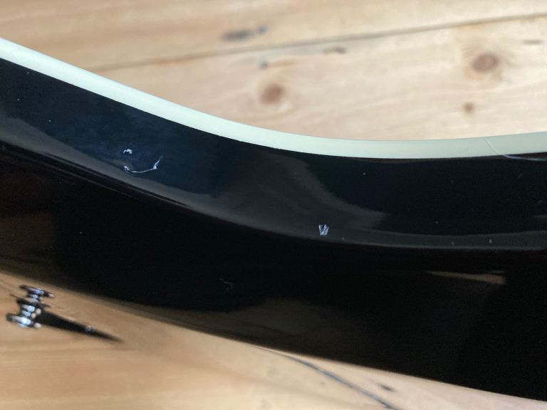 It's in generally very good overall condition overall, its pre owned, there are some minor indents on the top edge of the body and a couple of small indents on the back of the neck and other general signs of use and wear.