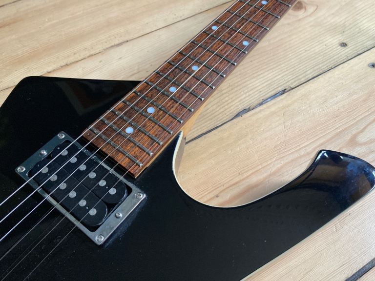 Features a 22 fret unbound neck, HH config with Ibanez AH3 & AH4 humbuckers, master vol and tone and 3 way switch. These have a smaller body than the original Iceman's, more of a hommage than direct copy.