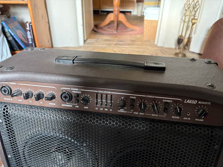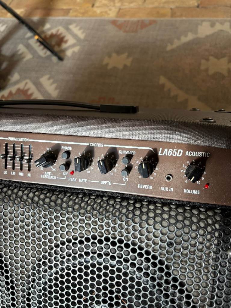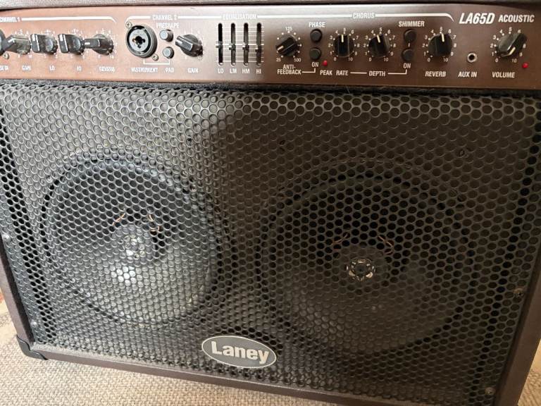Lovely Laney LA65D Acoustic amp. Excellent condition - I purchased this used around 3 years ago with the idea of getting back into the occasional gig but never happened so this has hardly been used since I acquired it! You are welcome to try it out before you buy. The only negative I can find with this amp is that it is quite heavy - if you are looking for a lightweight 'grab n' go' amp then this may not be for you!