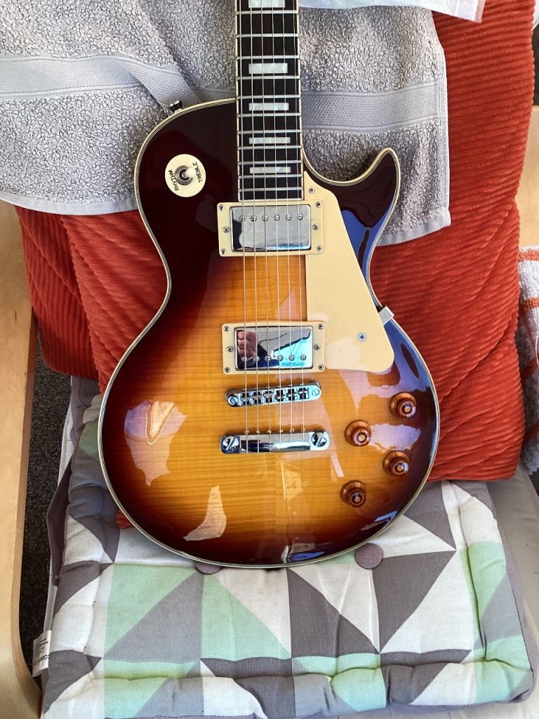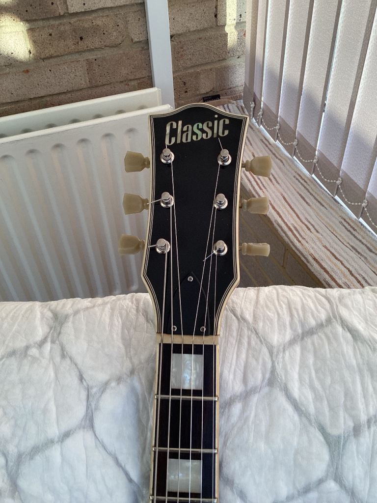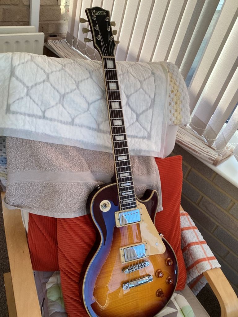 As new les Paul guitar by. Classic full body weight mahogany. Willkinson humbuckers new strings fret polish nice set up .absolute give away. Collect only