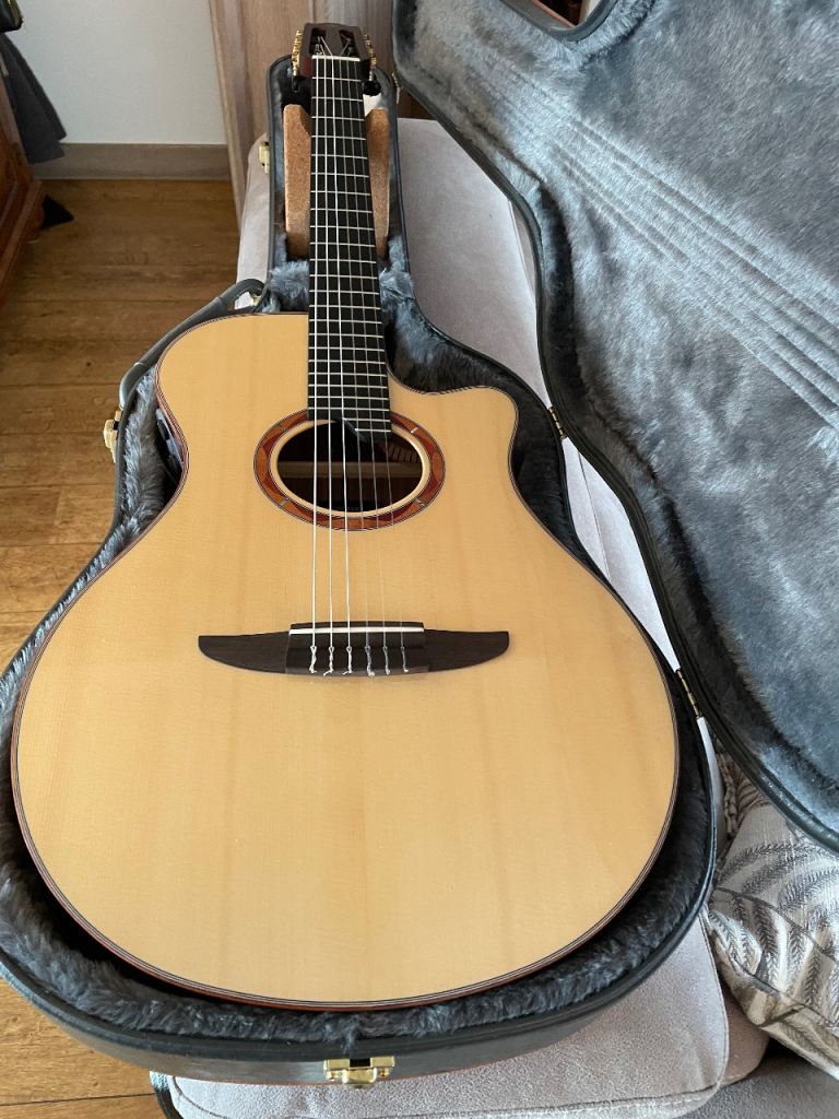 Internal storage compartment with lid for spare strings, strap, capo etc.