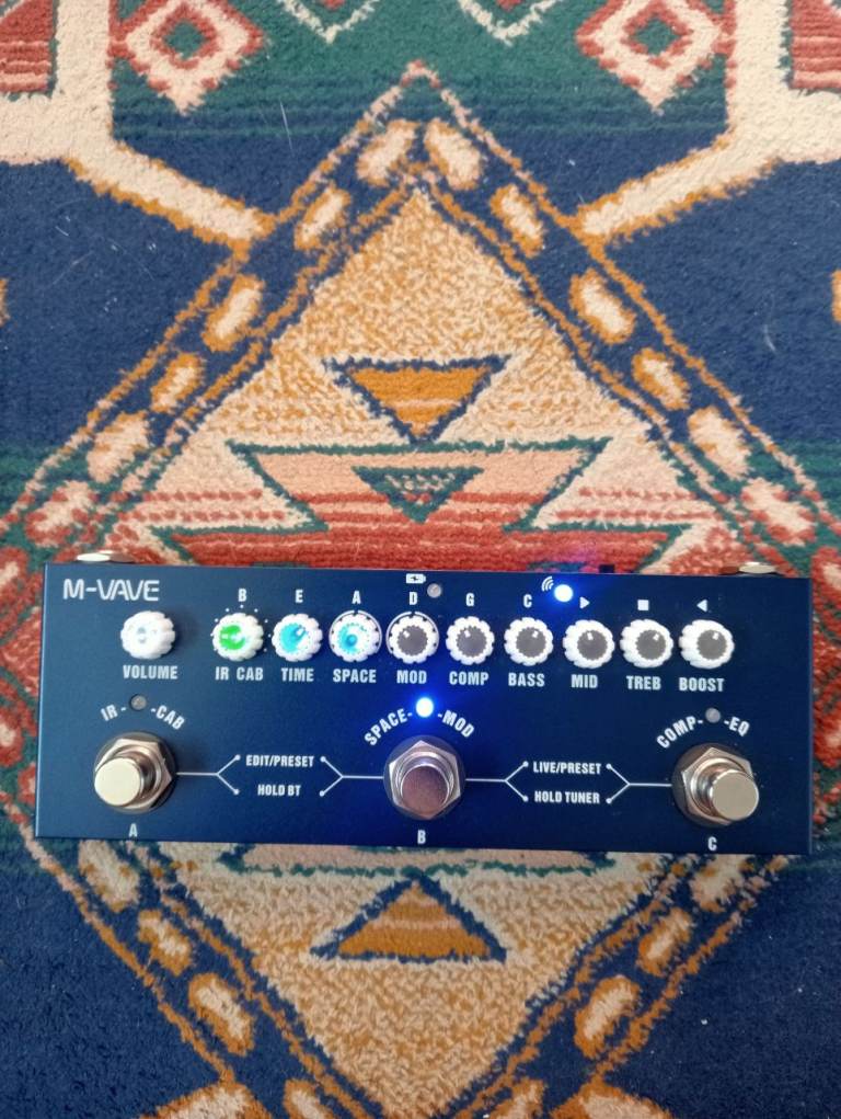 M-vave cube baby bass guitar pedal. Ir cabs, reverb, modulation, equilizer and boost, 3 presets to save. Rechargeable and bluetooth. Like new. Msg if interested thanks