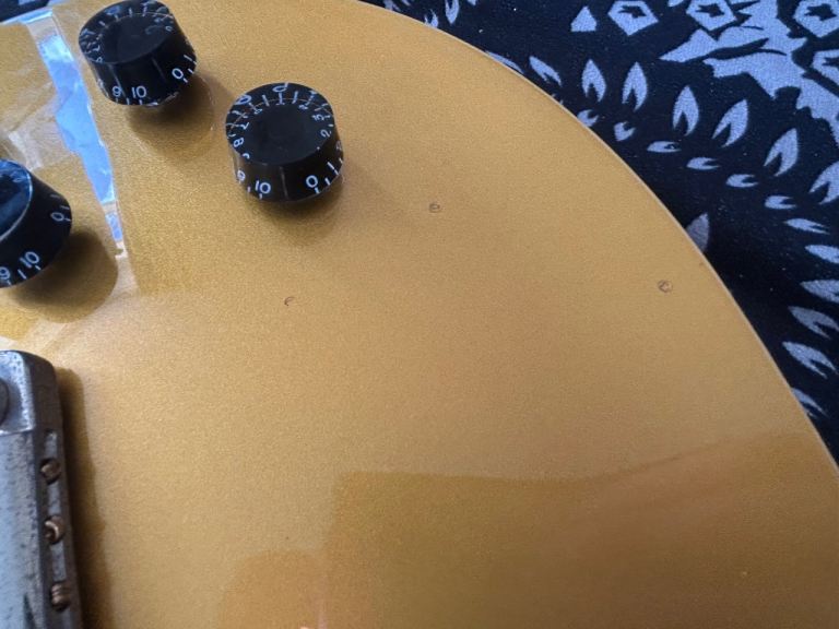 The guitar has some wear and tear, few small dings, scuffs, scratches, chips (mainly on the back) couple of tiny dings on the top