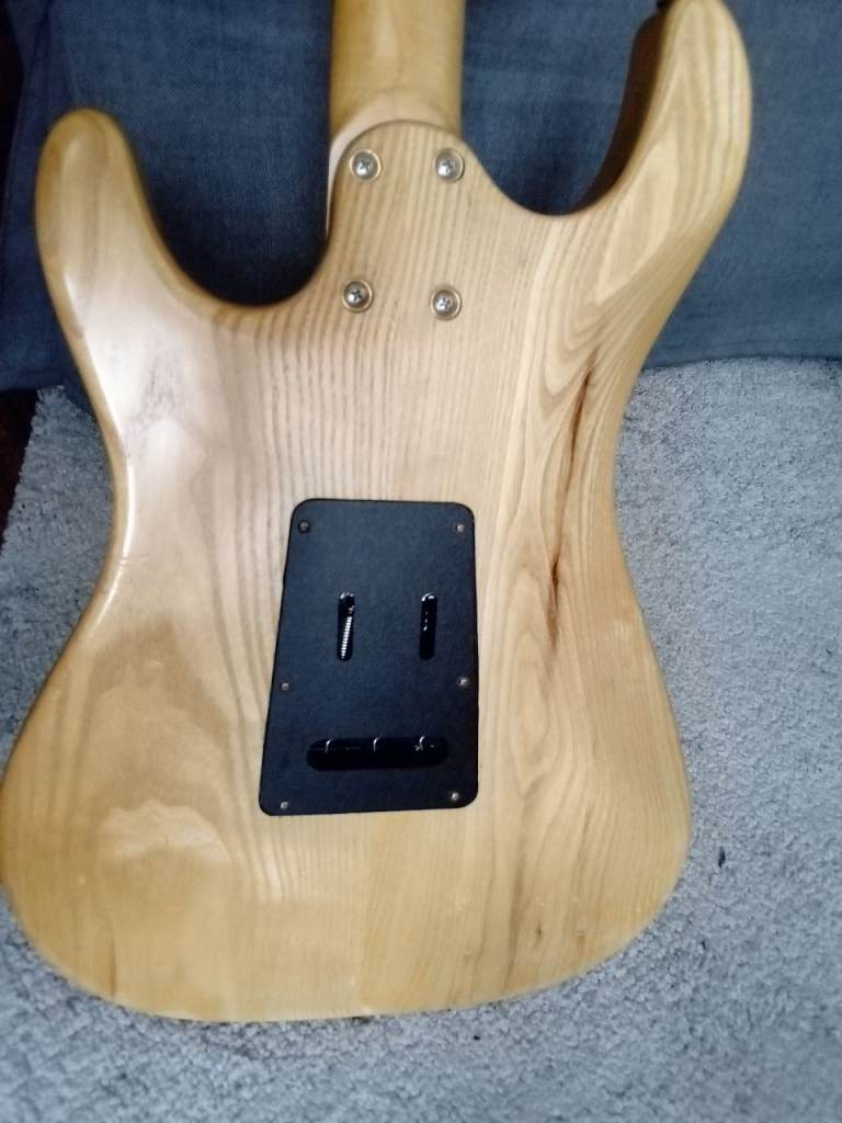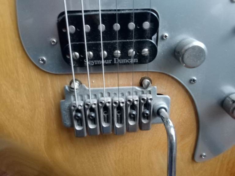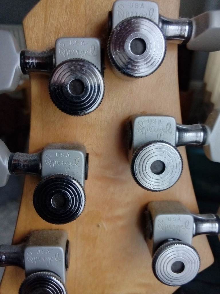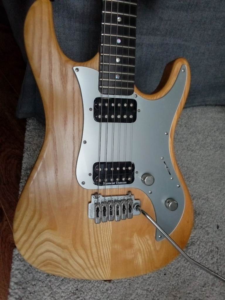 Features a maple neck with ebony fingerboard, abalone dot marker inlays, 22 frets, Wilkinson trem, Sperzel USA Trimlok tuners, volume and tone controls with 5-way switch and Eggle-designed Seymour Duncan Humbuckers which are designed for coil tap.