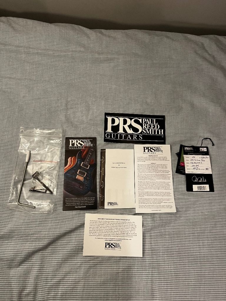 PRS Silver Sky Moc Sand 2020 version. Made in USA. This is the gloss version of the Moc Sand colour which has been discontinued. They only make the Moc Sand colour in the satin finish currently. It’s in excellent condition as I only play it sometimes at home. Never been gigged. Frets have lots of life remaining. Light scratches on back side but only visible if looked up close and under direct light. I have posted photos of this. No damages anywhere and all electronics works perfectly. Will be restrung with new strings when you come to collect. All original tags, paperwork, tremolo arm and original gig bag included.